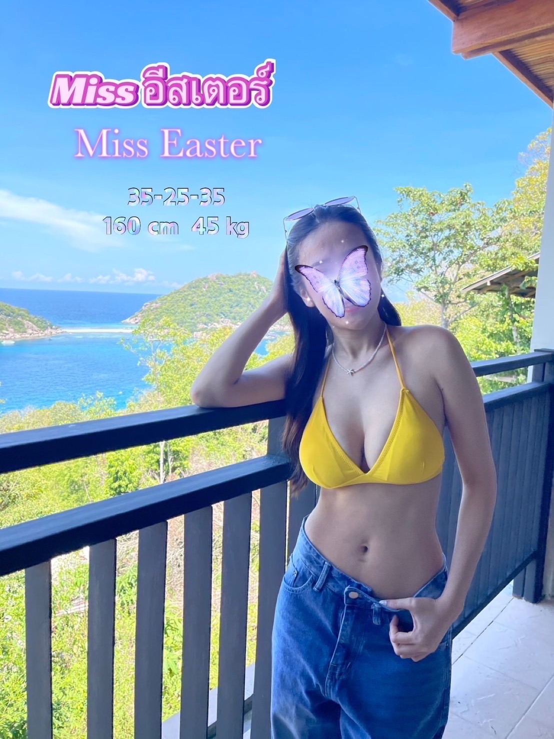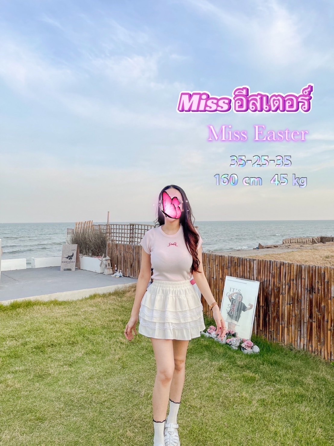 ถึงจะไม่ใช่เทศกาล แต่อีสเตอร์คนนี้ พร้อมจะมาให้พี่ๆทาสี เอ้ยย! ทาสีไข่พี่ๆ เอ้ย! ชวนพี่ๆมาหาไข่ในที่ลับอิอิ สัดส่วน 35 - 25- 35 สูง 160 ขนาดไซต์พอดี พกพาได้ สาวหวานสไตล์ลูกคุณ พี่ๆอยากจัด เตรียมแค่ตัวกับไข่มาให้น้องก็พอ